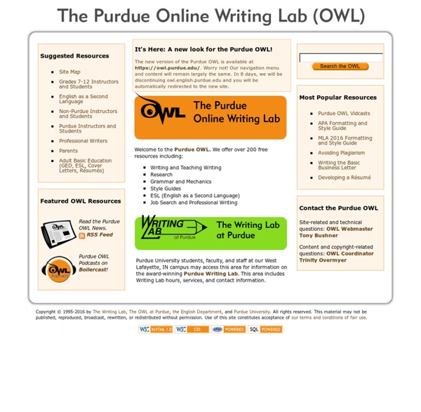 The Purdue Writing Lab College of Liberal Arts. Writing Lab Purdue OWL Research Contact Site Map. The Purdue Writing Lab Purdue University students, faculty, and staff at our West Lafayette, IN campus may access this area for information on the award-winning Purdue Writing Lab. This area includes Writing Lab hours, services, and contact information. The Purdue Online Writing Lab Welcome to the Purdue OWL.